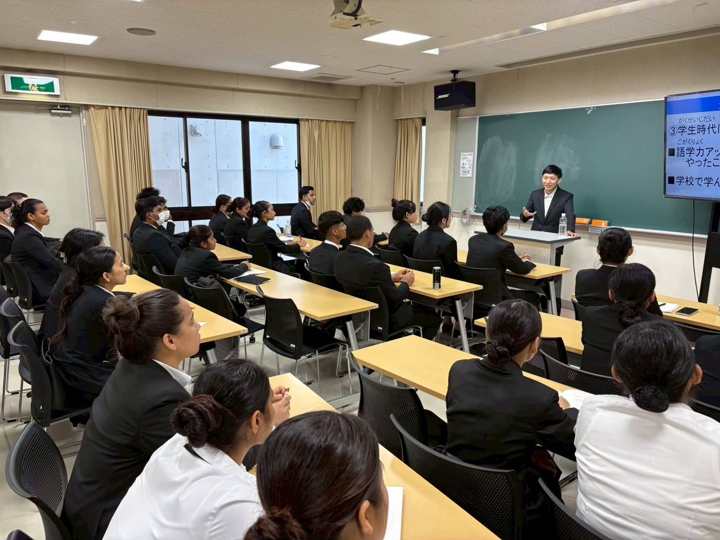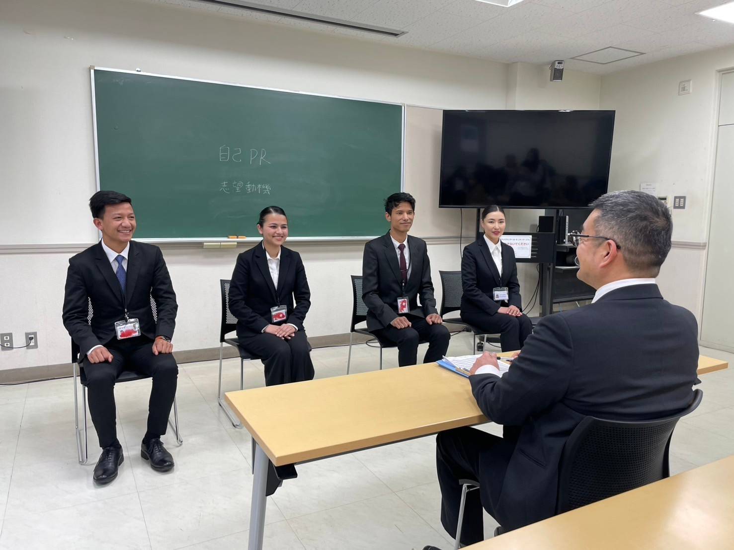 | 授業 | 1st Stage就職進路ガイドI 日本独特の就職活動について学んだり、自己PRの準備をしていく授業です | 2nd Stage就職進路ガイドⅡ 情報収集の方法、履歴書の書き方、面接練習を行います | 3rd Stage就職進路ガイドⅢ 応募書類の書き方や面接練習を繰り返し行います | 内定 内定後は社会人としてのマナーや心構えを学びます。また在留資格の手続きについてもアドバイスします |